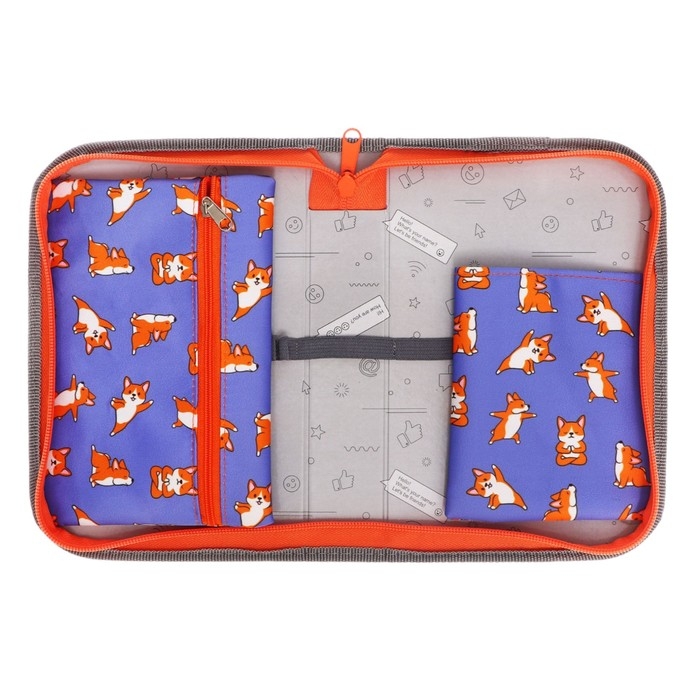 Пенал 1 секция 140 х 210 х 40 мм, откидной карман и косметичка, тканевый, Calligrata TOP Content "Сиба"