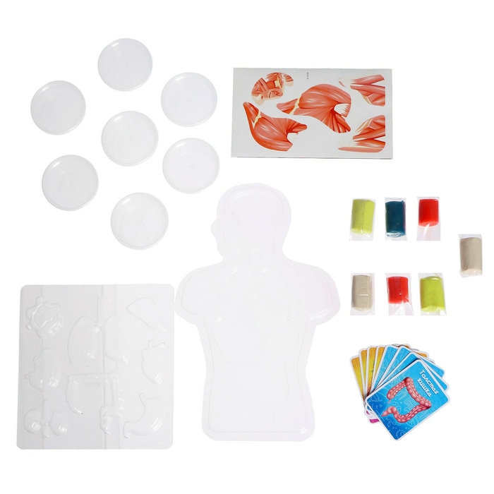 С набором для опытов «Моё удивительно тело» юный исследователь узнает о строении человеческого тела и о расположении важнейших внутренних органов, а также слепит каждый из них по отдельности. А обучающие карточки познакомят ребёнка с описанием органов и их функций.