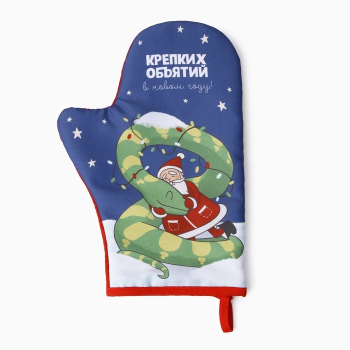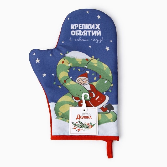 Новый год. Символ года 2025. Змея. Варежка-прихватка Доляна "Крепких объятий" 20х28 см, 35% хл, 65% пэ, ватин 250 г/м2