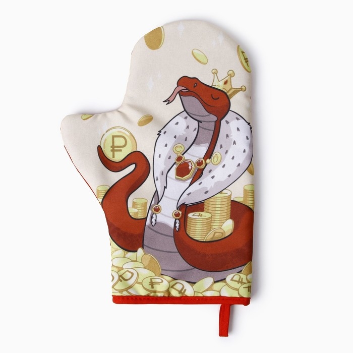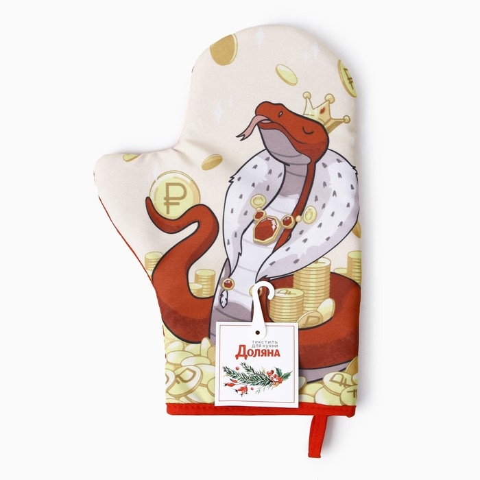 Новый год. Символ года 2025. Змея. Варежка-прихватка Доляна "Больших успехов" 20х28 см, 35% хл, 65% пэ, ватин 250 г/м2
