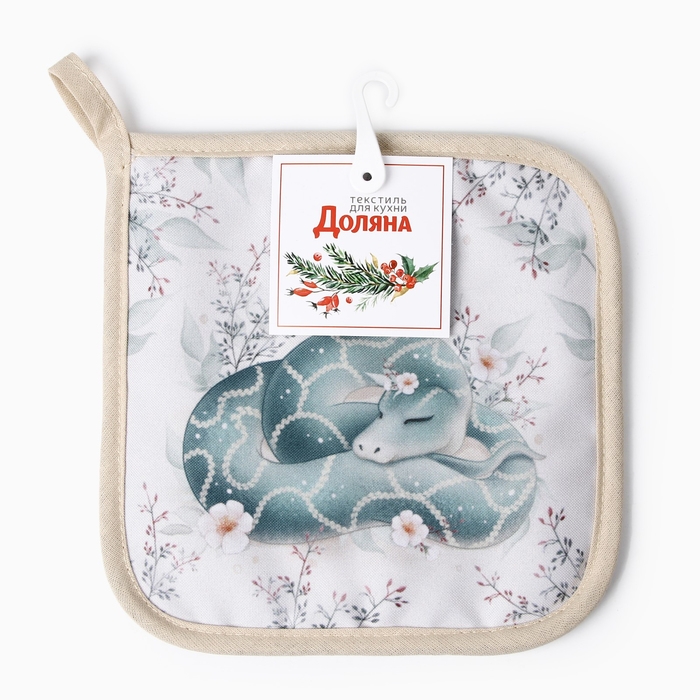 Новый год. Символ года. Змея. Прихватка Доляна "Теплых мгновений" 17х17 см, 35% хл, 65% пэ, ватин 250 г/м2