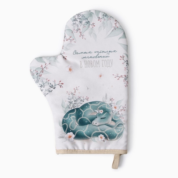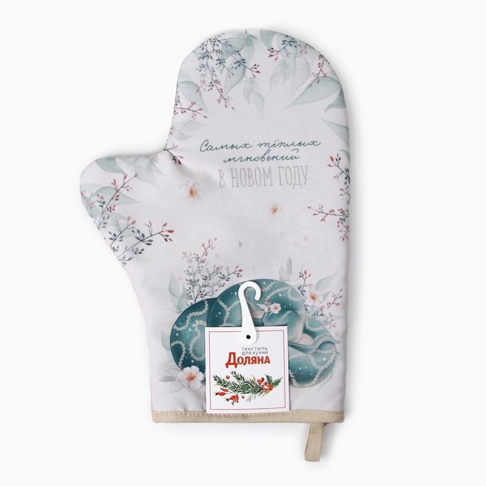 Новый год. Символ года 2025. Змея. Варежка-прихватка Доляна "Теплых мгновений" 20х28 см, 35% хл, 65% пэ, ватин 250 г/м2