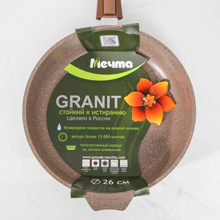 Сковорода «Гранит Brown», d=26 см, антипригарное покрытие, съёмная ручка, цвет МИКС