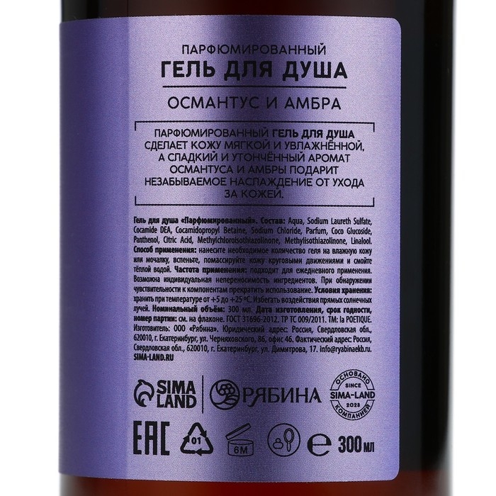 Гель для душа, 300 мл, аромат османтуса и амбры, LA POETIQUE