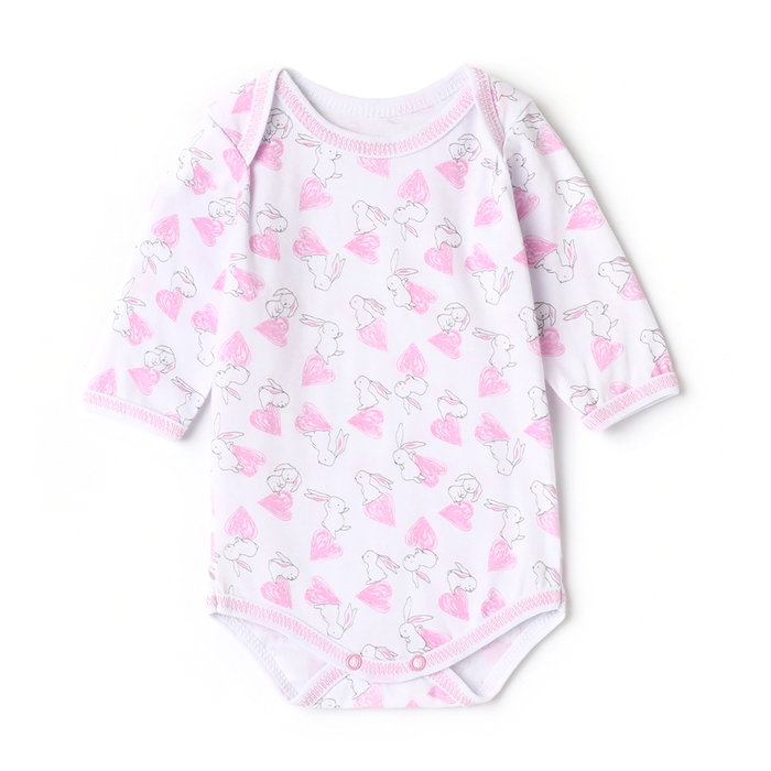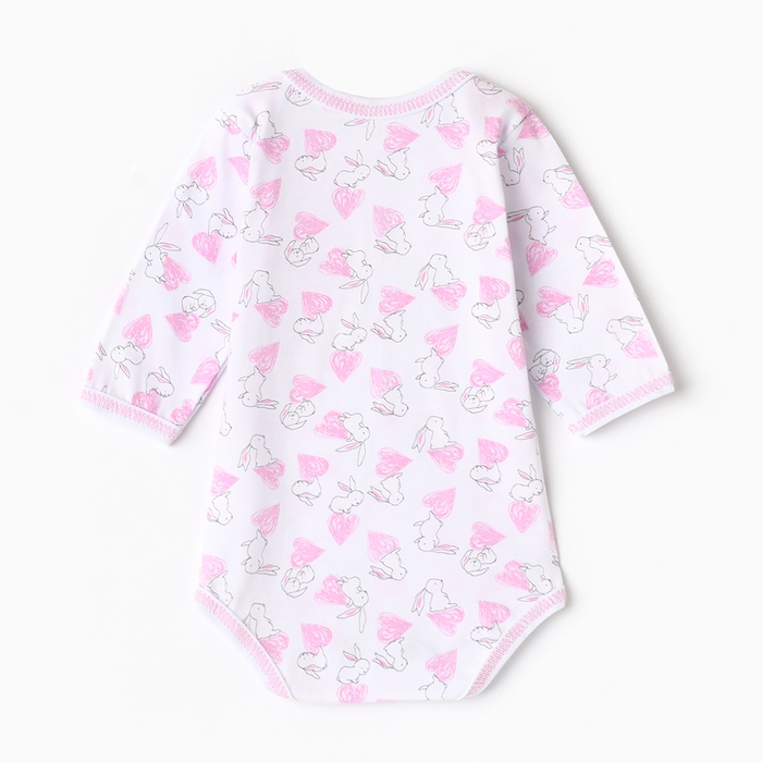 Боди детское с длинным рукавом, цвет белый/зайки, рост 62