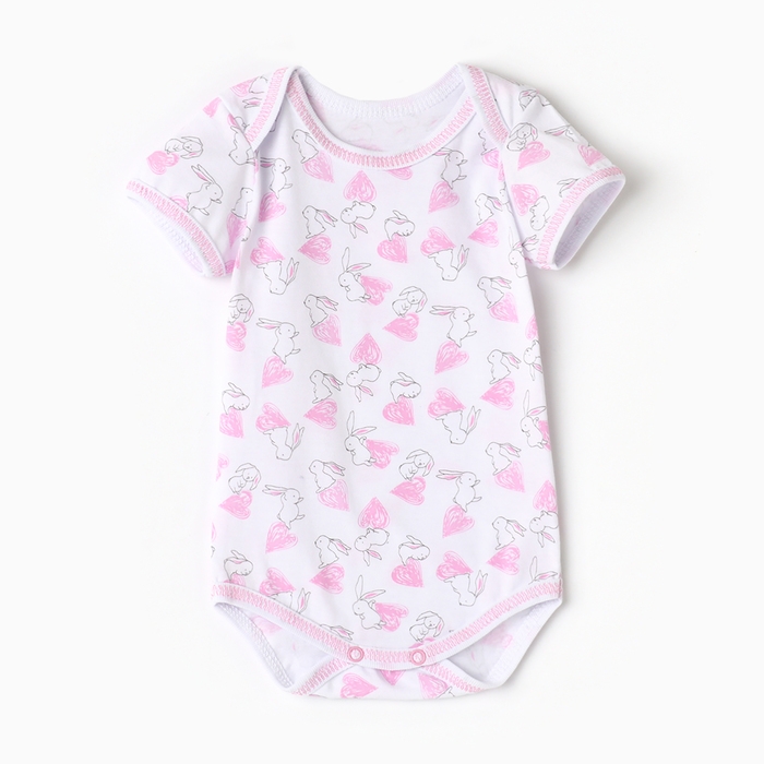 Боди детское с коротким рукавом, цвет белый/зайки, рост 80