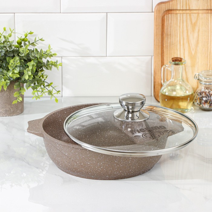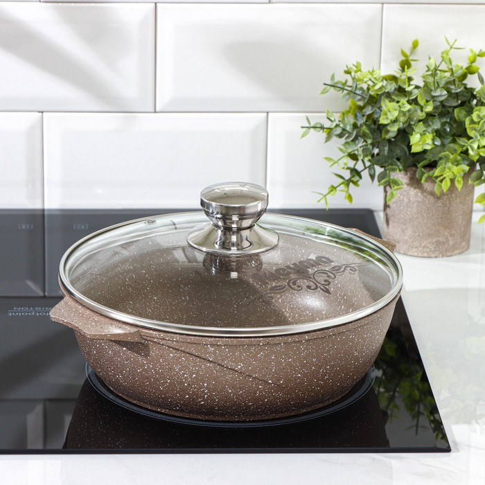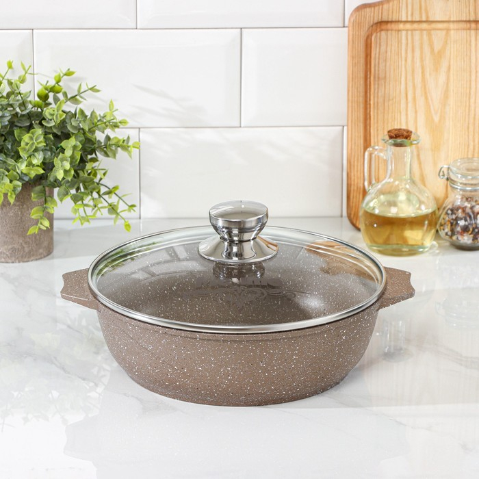 Жаровня «Гранит Brown», 2,4 л, d=26 см, стеклянная крышка, антипригарное покрытие, цвет коричневый