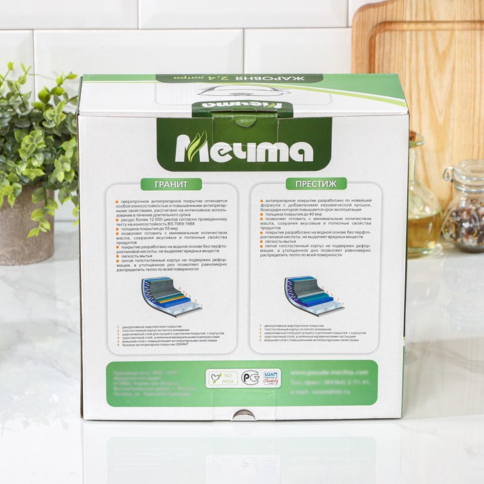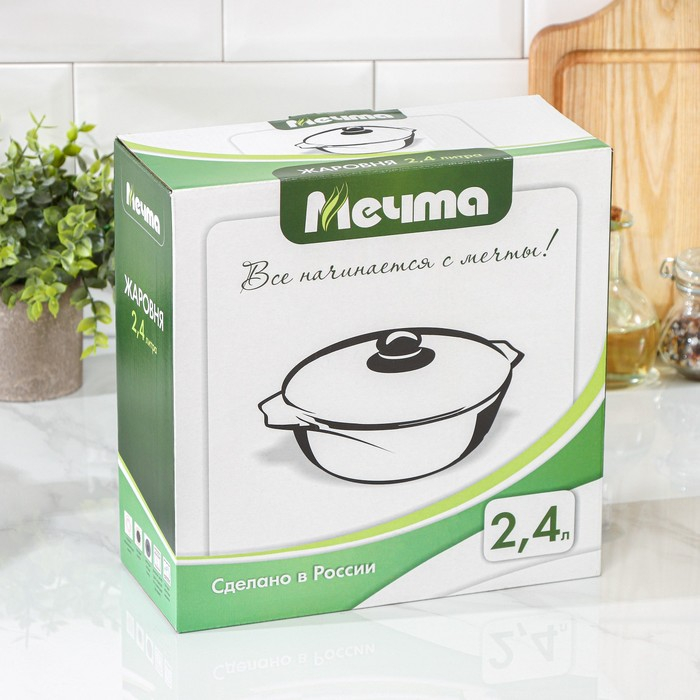 Жаровня «Гранит Brown» со стеклянной крышкой выполнена из прочного литого алюминия, имеет антипригарное покрытие. Правильное соотношение толщины дна и стенок делает посуду устойчивой к деформации и обеспечивает равномерный прогрев. В жаровне можно готовить и на плите, и в духовке.