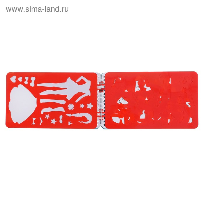 В альбоме есть 5 листов с пластиковыми трафаретами, которые можно снимать и в дальнейшем использовать для создания поделок. Также внутри есть 2 листа наклеек, инструкция, 36 страниц с шаблонами картинок, которые ребёнок должен дорисовать, и 36 чистых страниц для свободного творчества. Малыш сможет проявить фантазию и украсить рисунки наклейками.