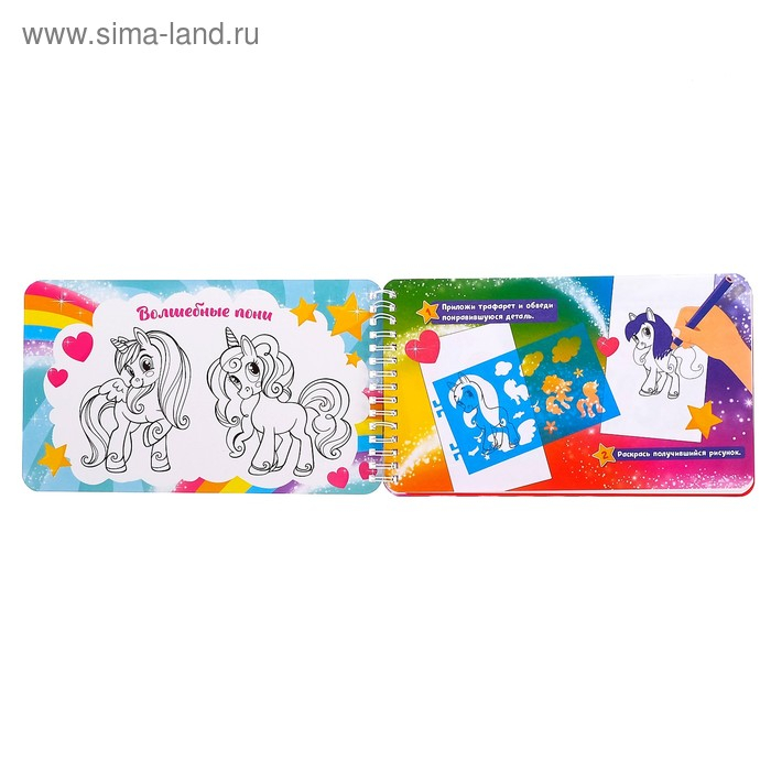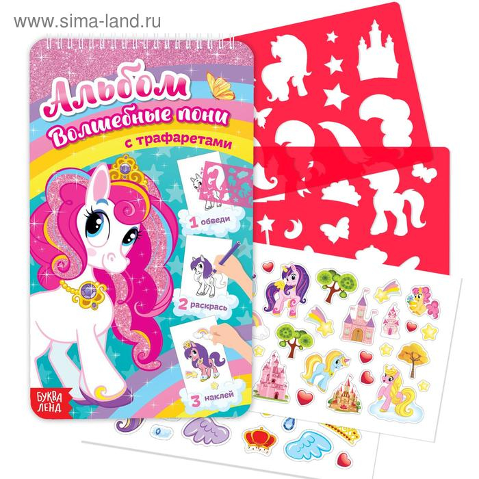 Альбом с наклейками и трафаретами «Волшебные пони», 72 стр.