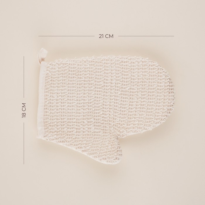 Созданная с учетом естественных потребностей кожи, эта мочалка-варежка обеспечивает мягкий, но эффективный массаж, улучшая кровообращение и способствуя обновлению клеток. Размер 21x18 см идеально подходит для комфортного использования на любых участках тела.