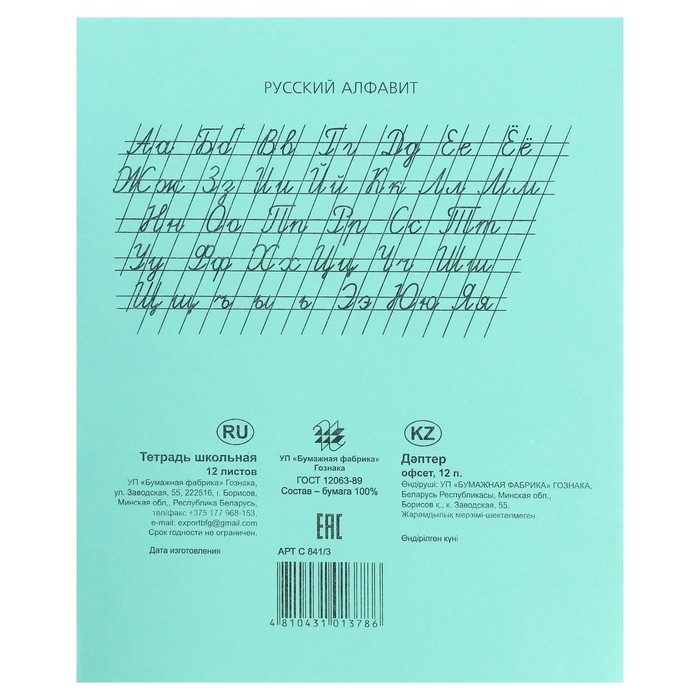 Комплект тетрадей из 20 штук, 12 листов в узкую линию Бумажная фабрика "Зелёная обложка", 60 г/м2, блок офсет, белизна 96%