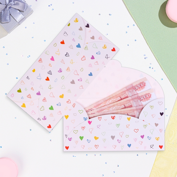 Конверт для денег "Универсальный" сердечки, 19 х 10 см