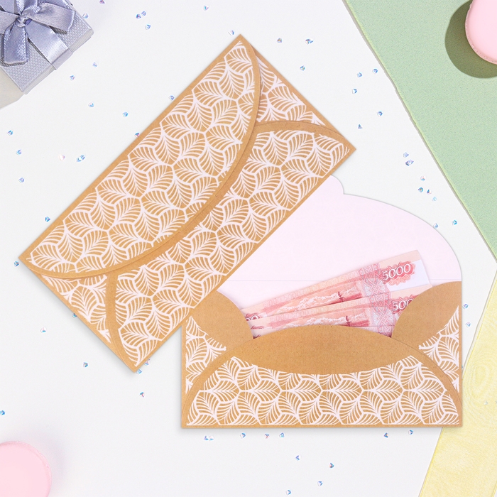 Конверт для денег "Универсальный" белые узоры, 19 х 10 см