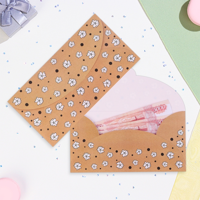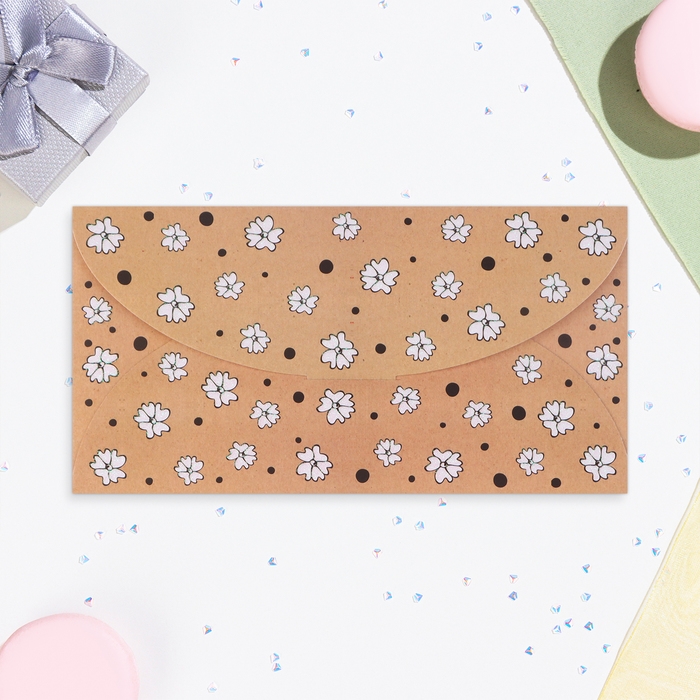 Конверт для денег "Универсальный" цветочки на крафте, 19 х 10 см