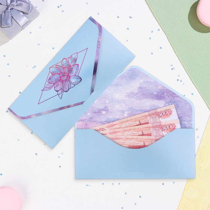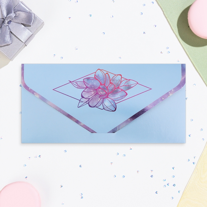 Конверт для денег "Универсальный" космический цветок, тиснение, 19,5 х 9 см
