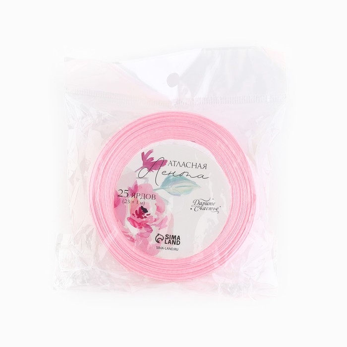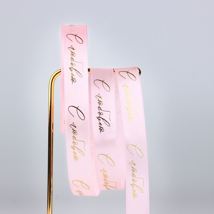 Лента атласная с тиснением «С любовью», розовая, 2 см х 22.5 м
