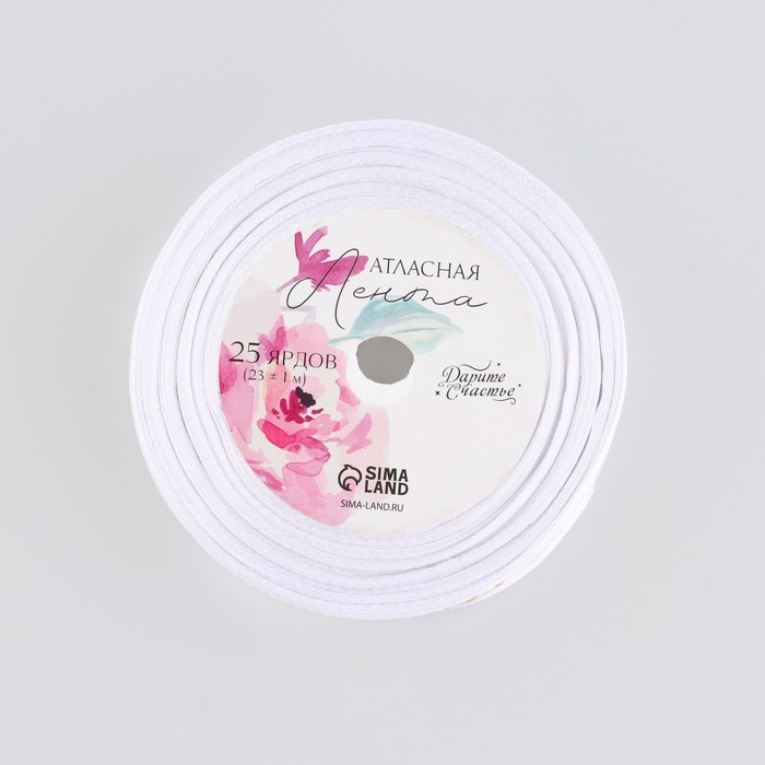Лента атласная с тиснением «Ручная работа», белая, 2 см х 22.5 м