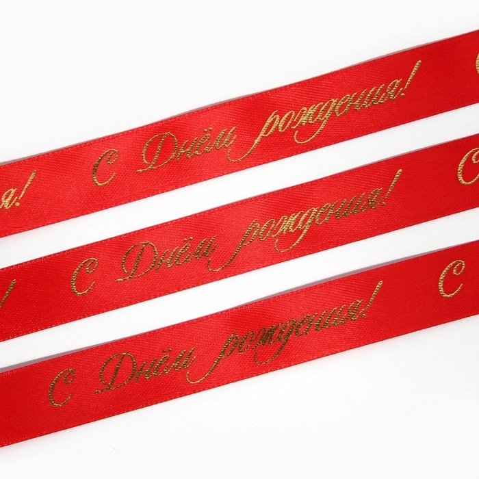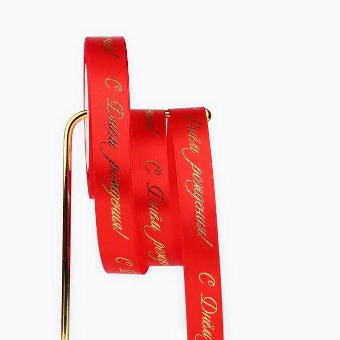 Лента атласная с тиснением «С Днём рождения!», красная, 2 см х 22.5 м