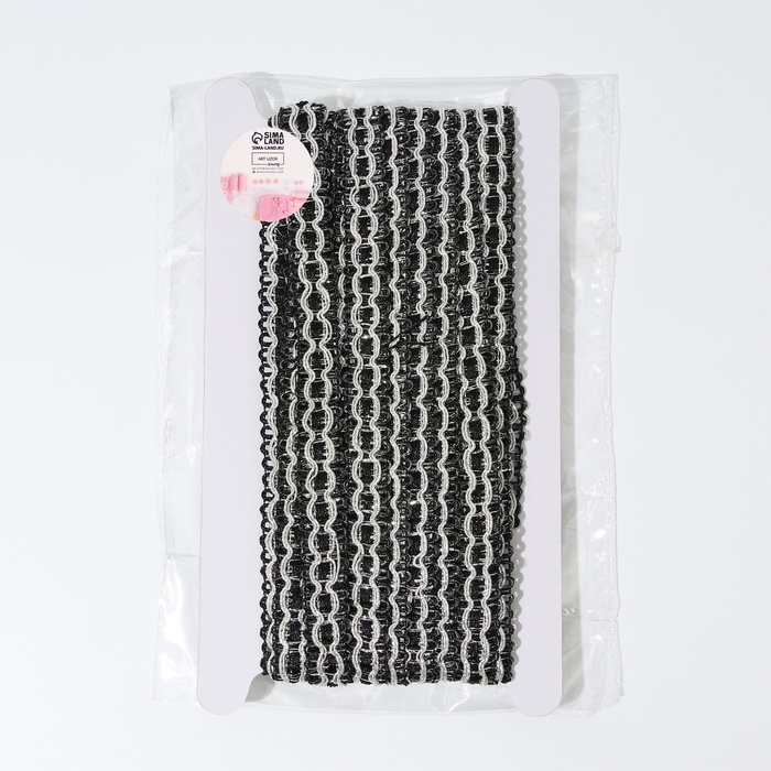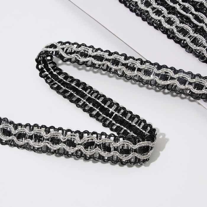Тесьма декоративная, 16 мм, 9,1 ± 1 м, цвет черный/серебряный
