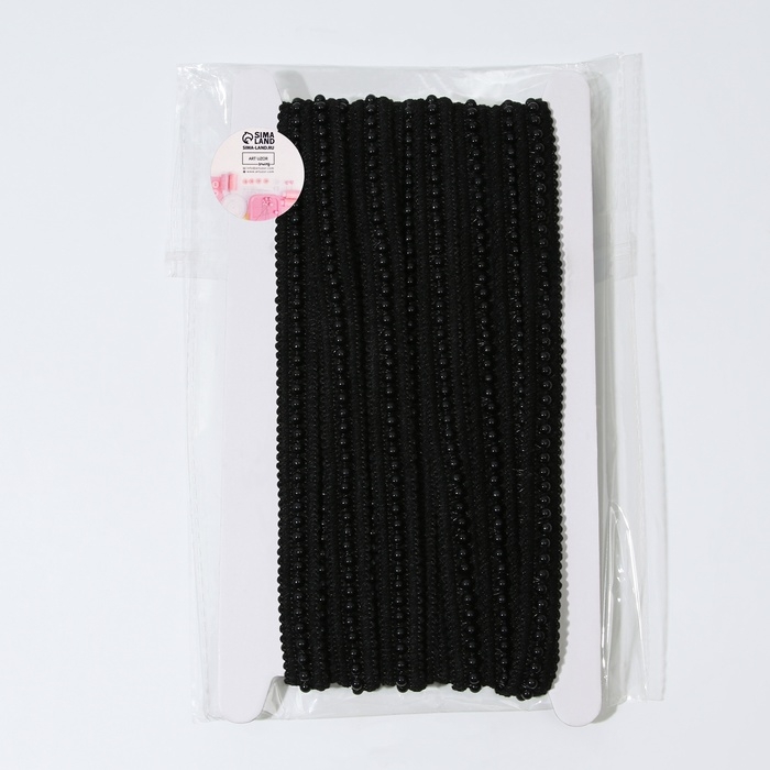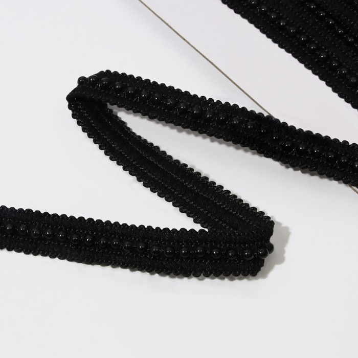 Тесьма декоративная с бусинами, 15 мм, 4,5 ± 0,5 м, цвет чёрный