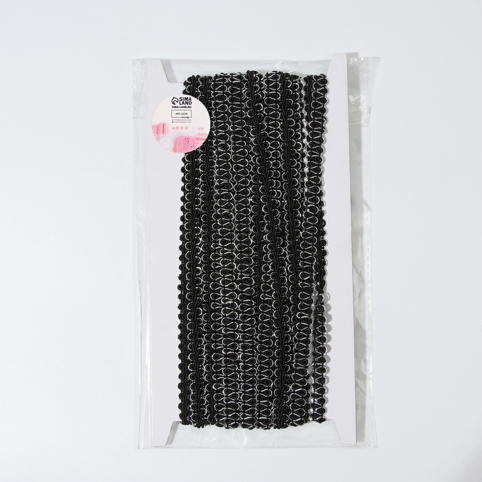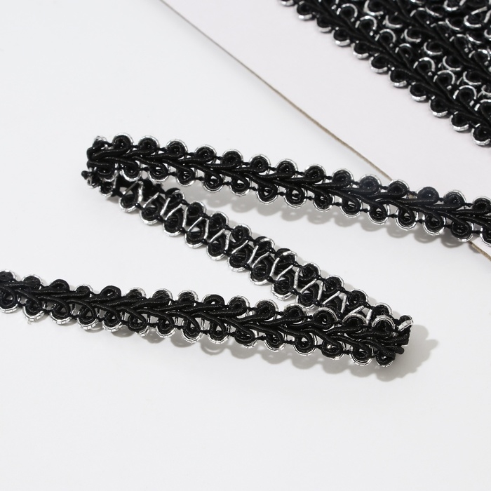Тесьма декоративная «Шанель», 8 мм, 10 ± 1 м, цвет чёрный/серебряный