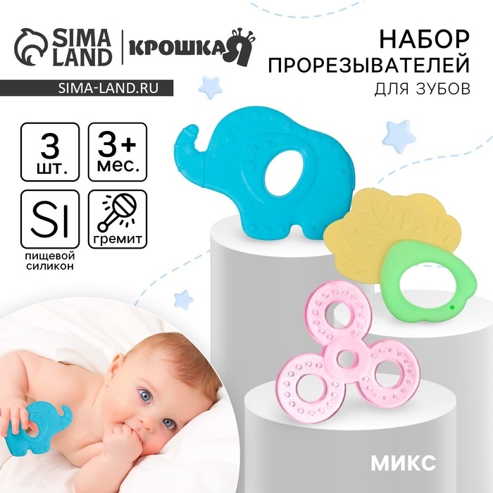 Набор прорезывателей силиконовых «Для малыша», с погремушкой, 3 шт., Крошка Я