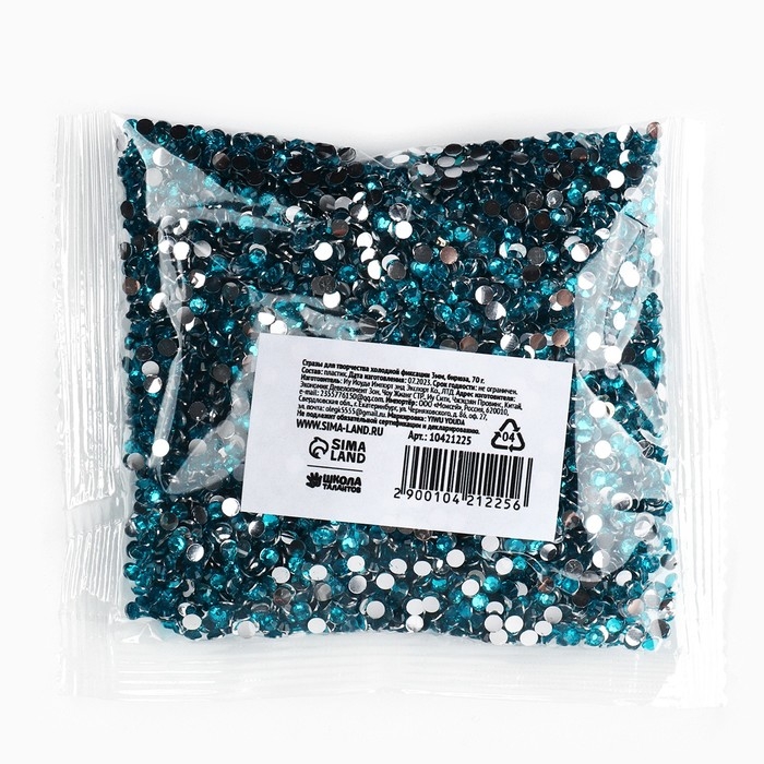Стразы для творчества холодной фиксации бирюзаовые, d = 3 мм, 70 гр