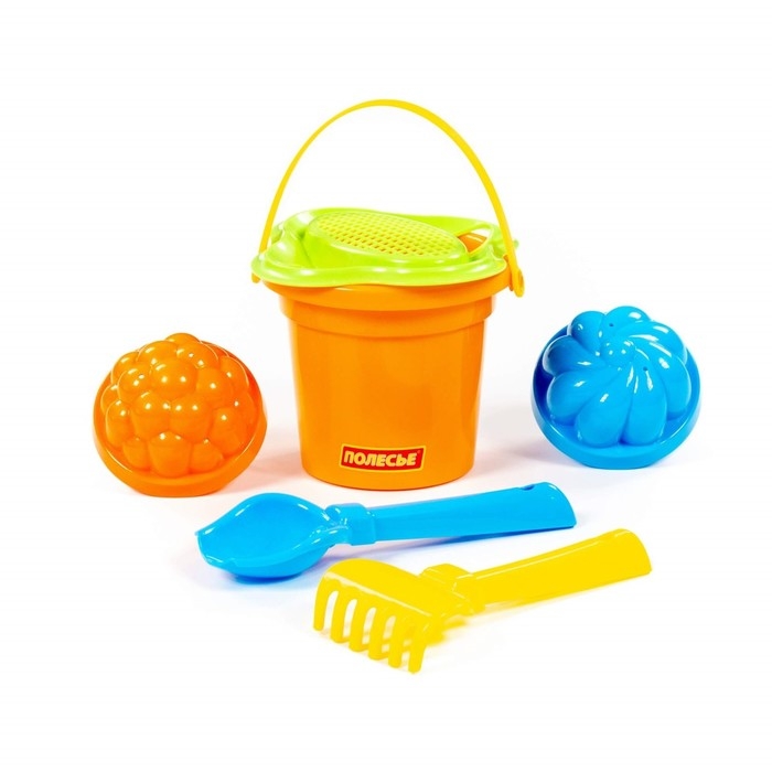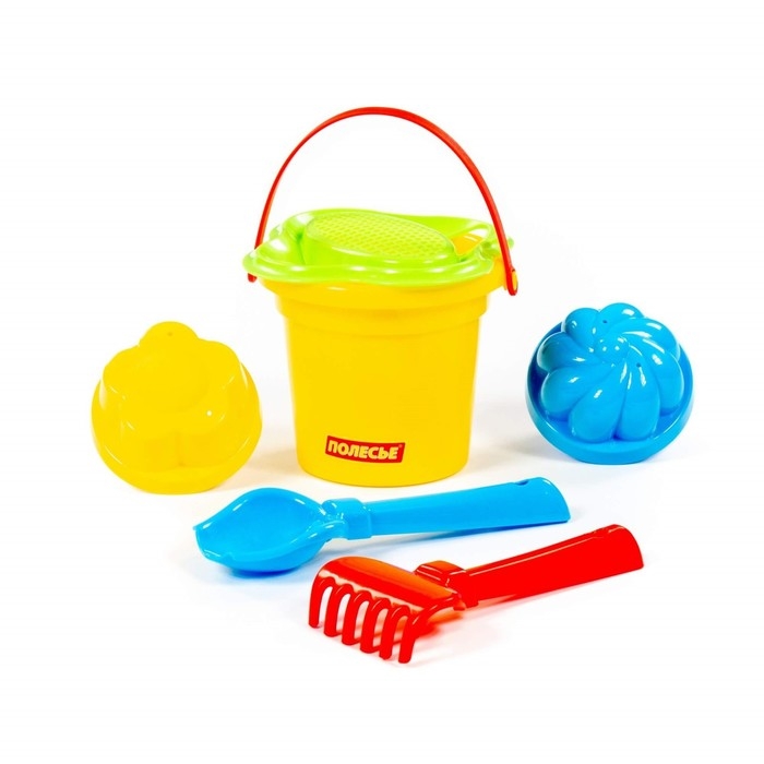 Песочный набор №155: ведро, ситечко-цветок, совок, грабельки, 2 формочки, лейка, цвета МИКС
