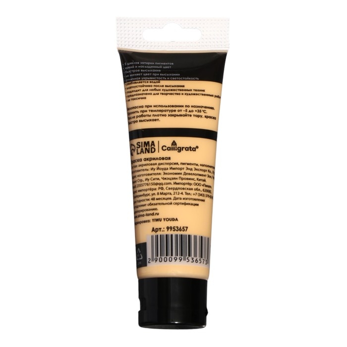 Краска акриловая матовая в тубе 75мл CALLIGRATA, КМ036, Телесная, пантон 473С