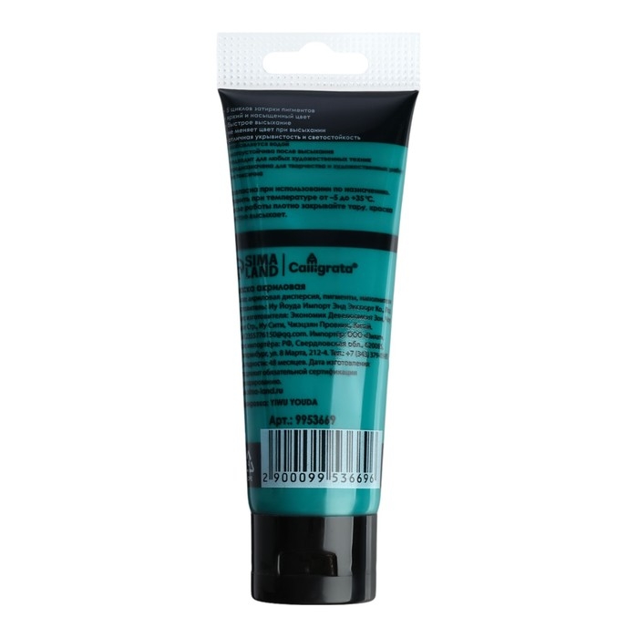 Краска акриловая матовая в тубе 75мл CALLIGRATA, КМ010, Виридианский, пантон 3292С