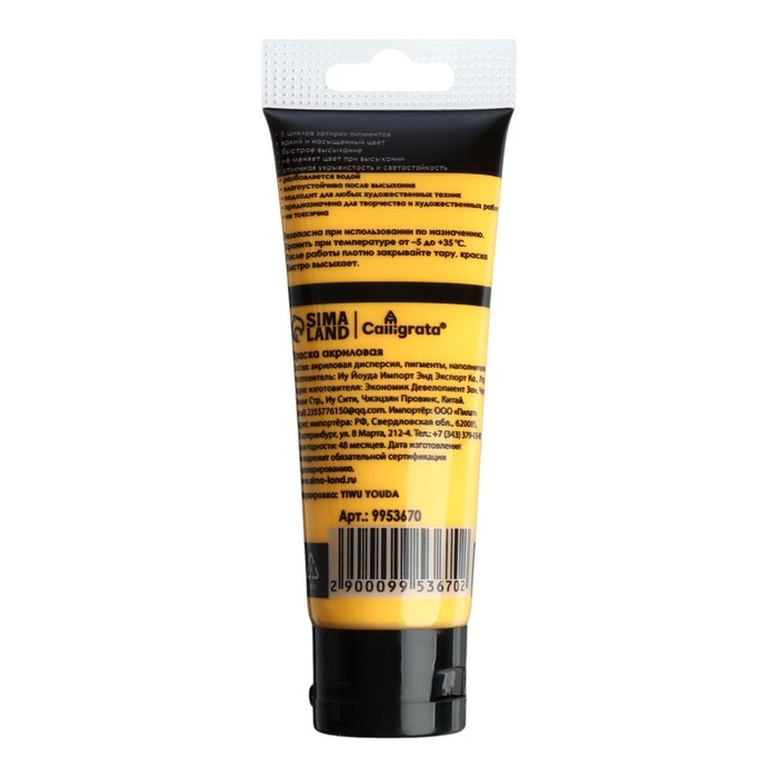 Краска акриловая матовая в тубе 75мл CALLIGRATA, КМ015, Желтый Глубокий, пантон 138С