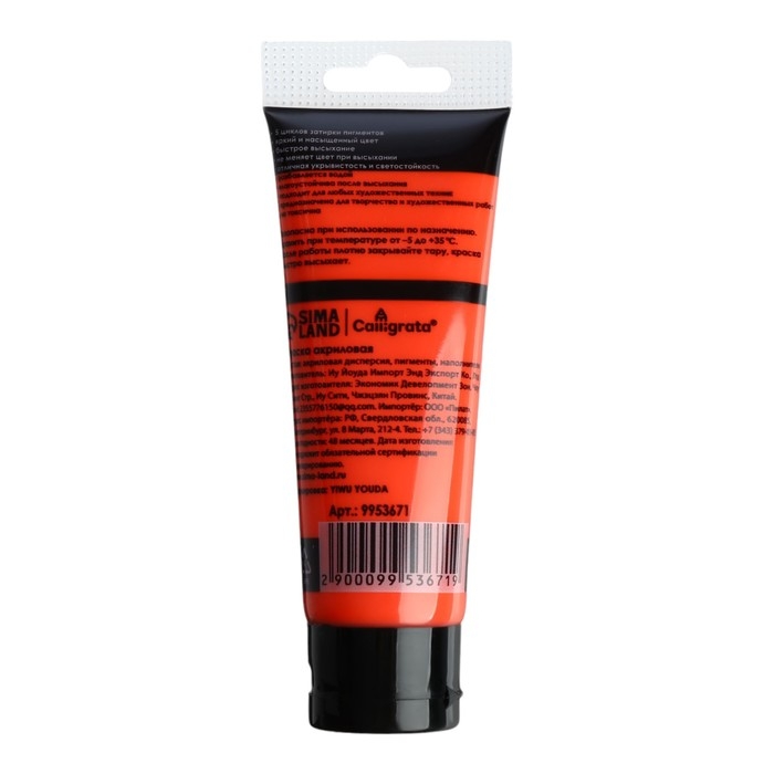 Краска акриловая матовая в тубе 75мл CALLIGRATA, КМ016, Красно-оранжевый, пантон 179С