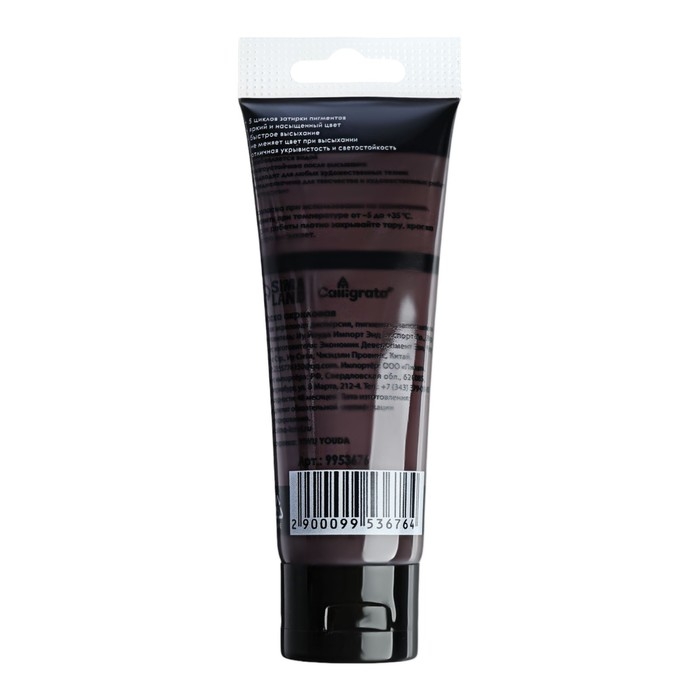 Краска акриловая матовая в тубе 75мл CALLIGRATA, КМ026, Шоколад, пантон BLACK 5C