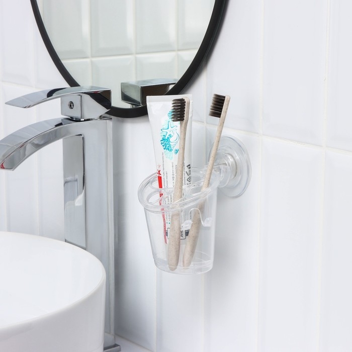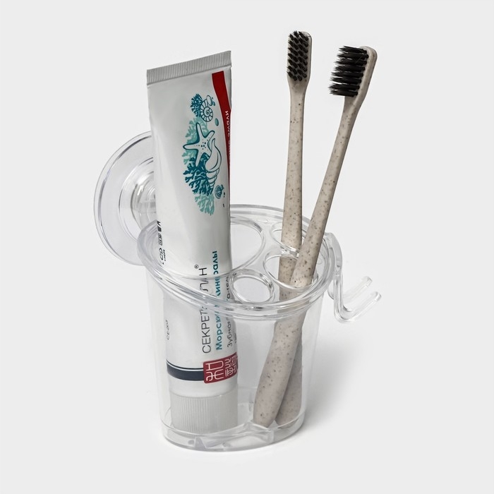 Держатель для зубных щёток и пасты на липучке Доляна, 12,5×11,5×11 см, цвет прозрачный