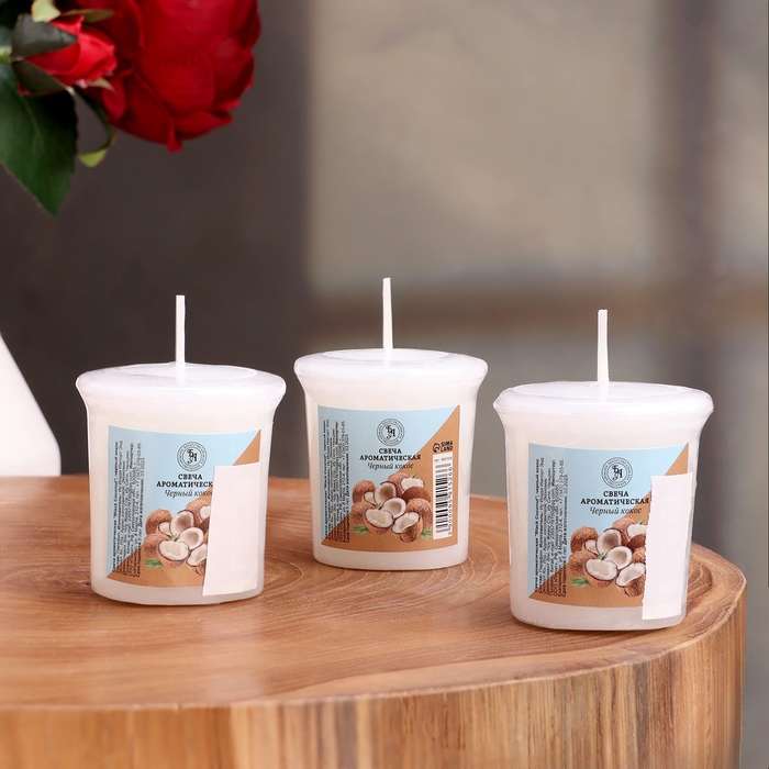 Свеча ароматическая "Black Coconut", черный кокос, набор 5х4,5 см, 3 шт