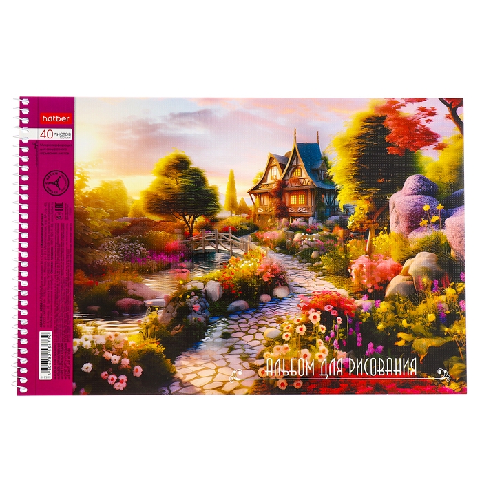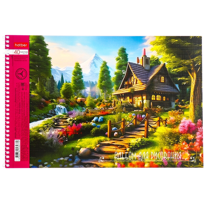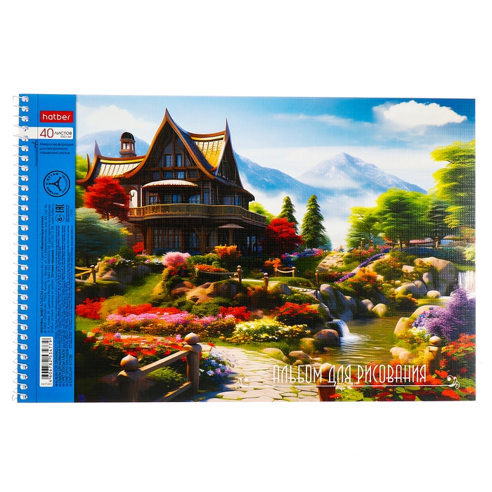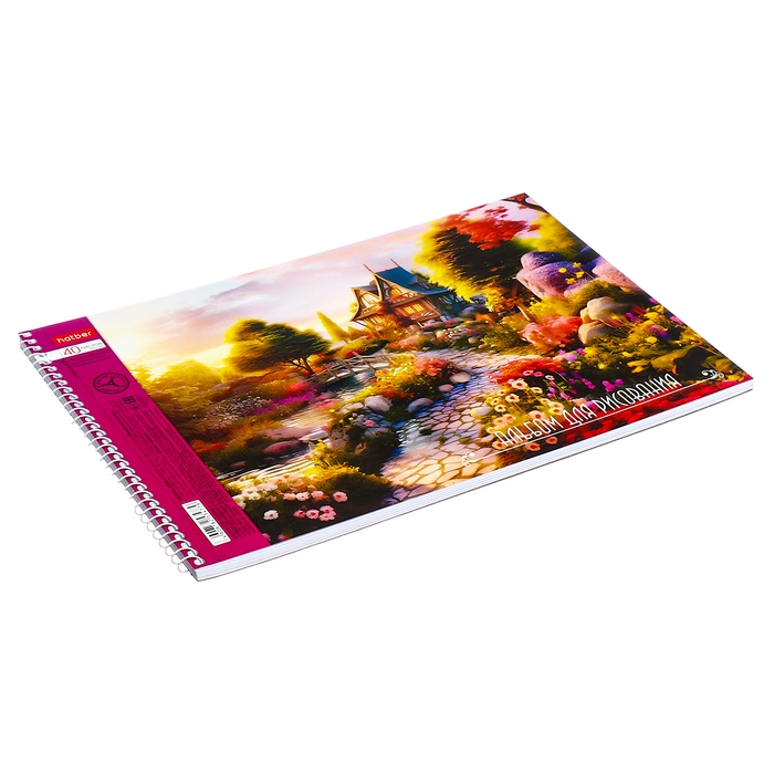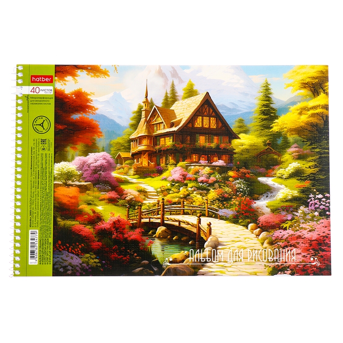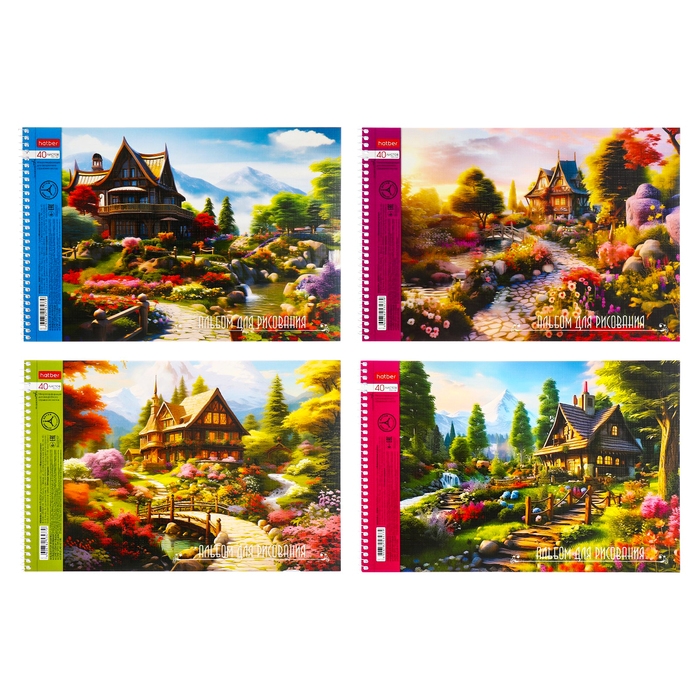 Альбом для рисования А4, 40 листов, на гребне, "Живописные уголки", обложка мелованный картон, перфорация на отрыв, блок 100 г/м2, МИКС