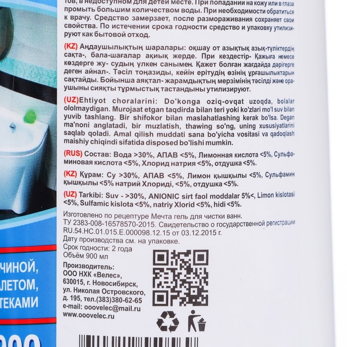 Гель для чистки ванн "Сила мечты" 900 мл