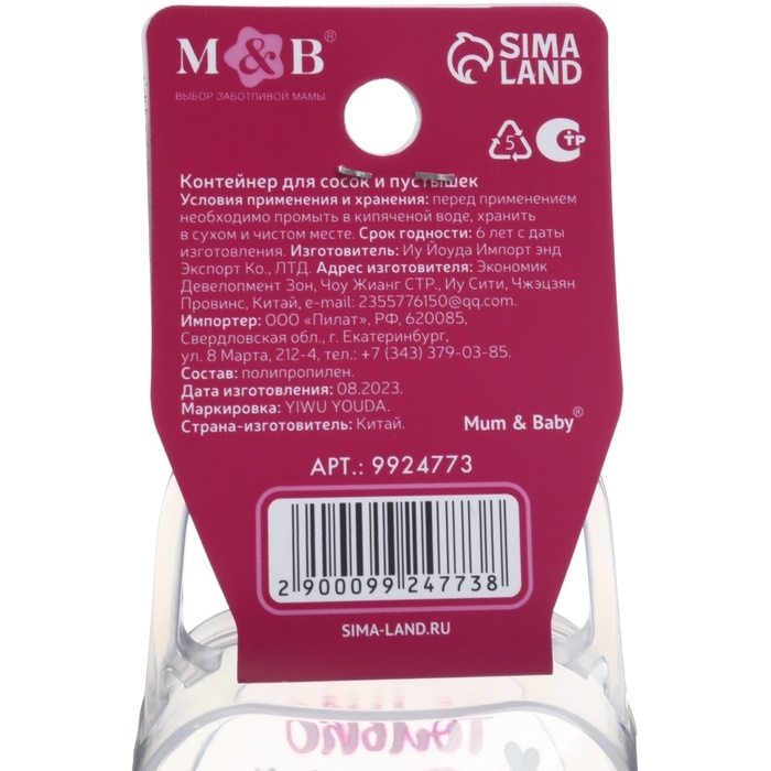 В контейнере удобно хранить пустышку, когда вы ее не используете.