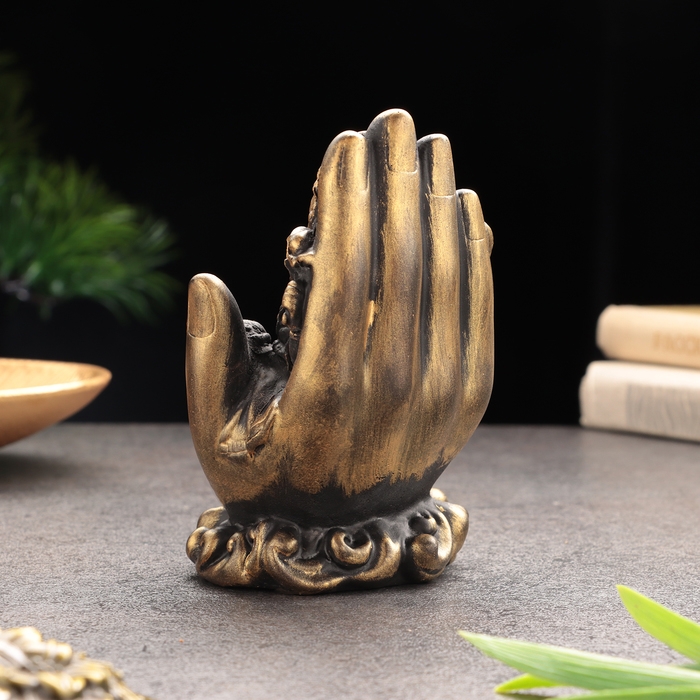 Сувенир "Ганеш в ладони", гипсобетон, 13х8х7см