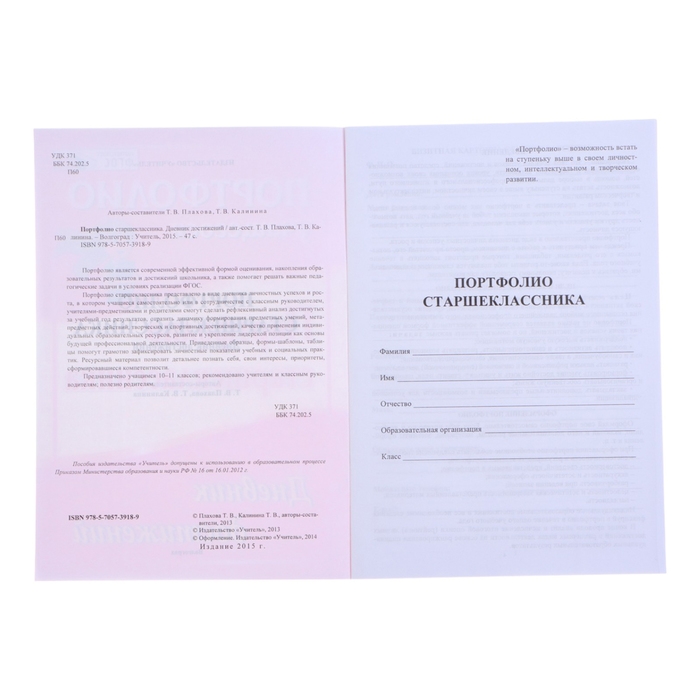 Папка "Портфолио старшеклассника", 8 грамот, А4