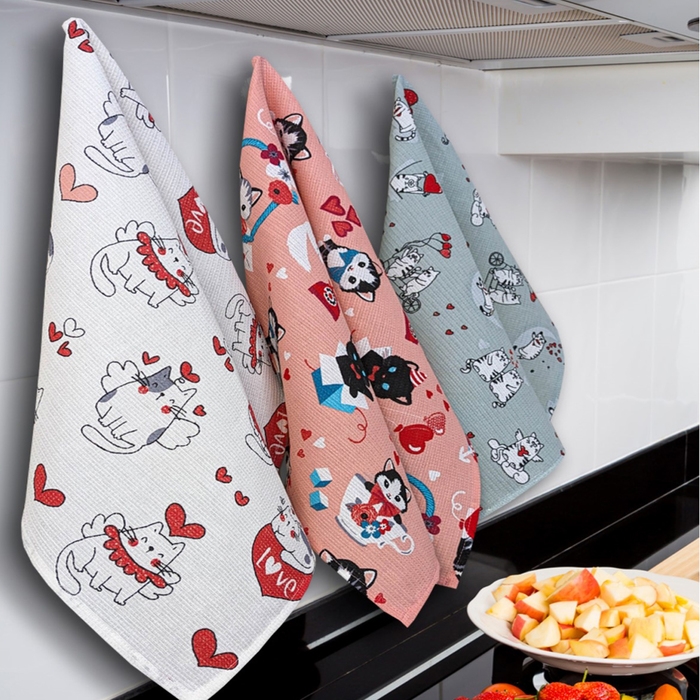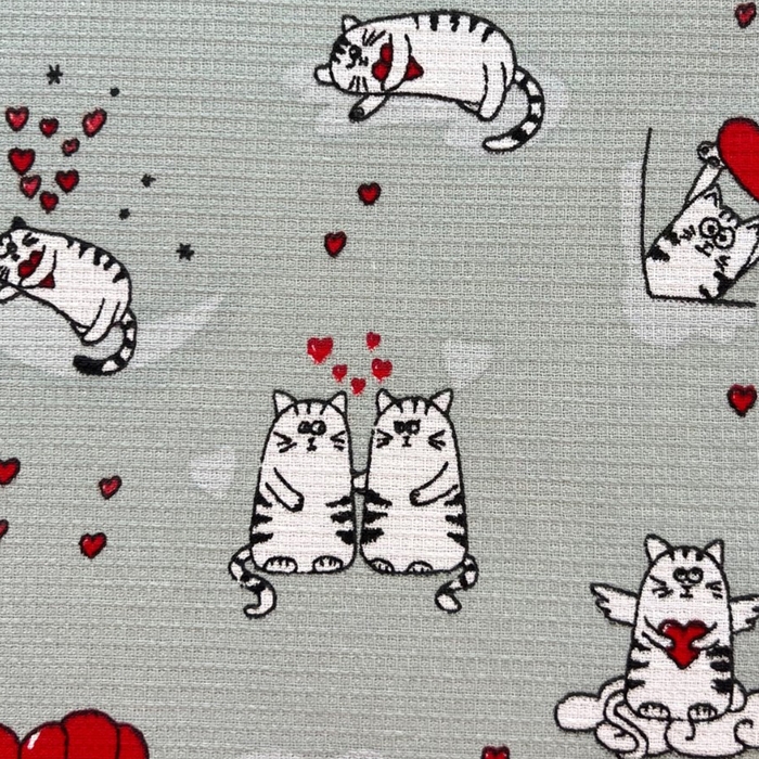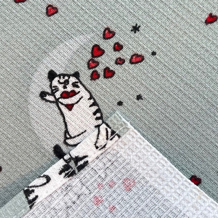 Полотенце вафельное Котята серые 45х60см, 150г/м, хл100%