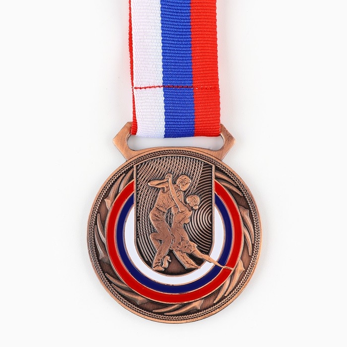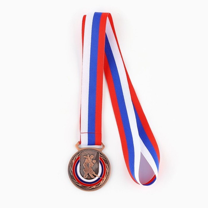 Медаль призовая 050, d= 7 см. 3 место, триколор. Цвет бронза. С лентой
