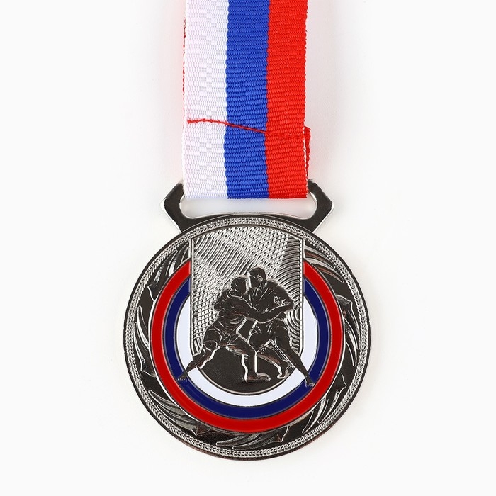 Медаль тематическая 195, «Борьба», d= 5 см. Цвет серебро. С лентой