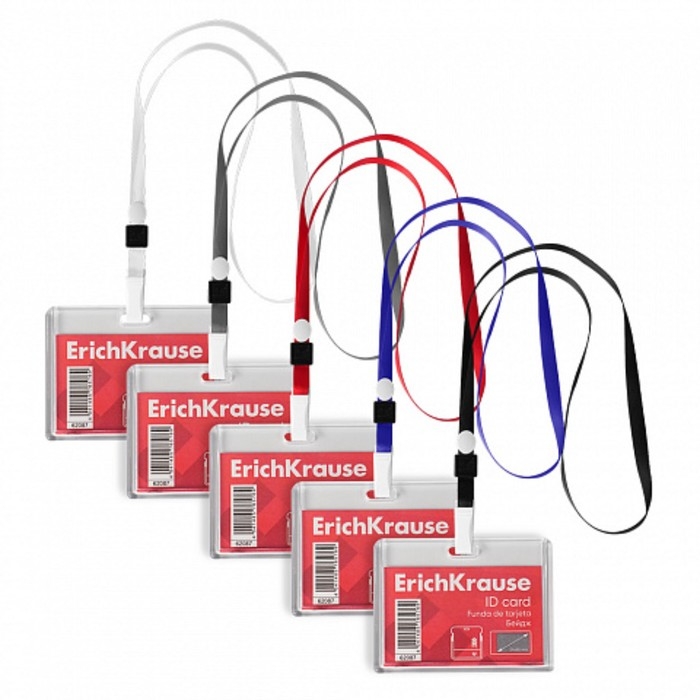 Бейдж горизонтальный 86 х 54 мм, ErichKrause слайдер, текстильная лента, цвет микс