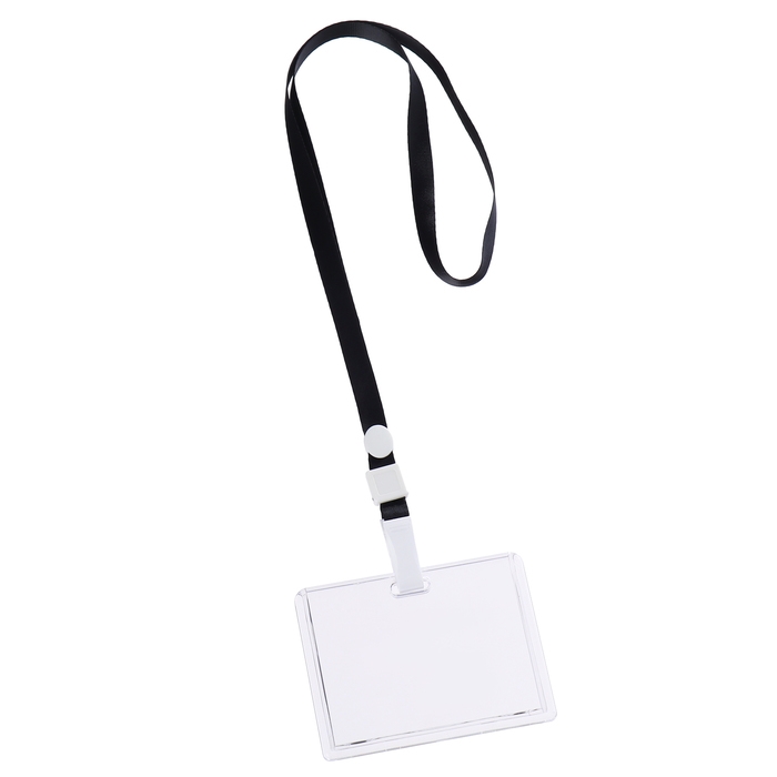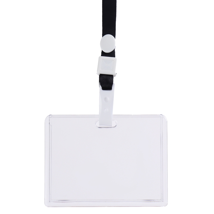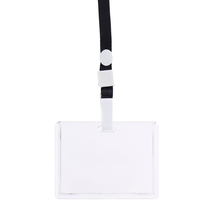 Бейдж горизонтальный в комплекте с лентой. Бейдж имеет удобный механизм открытия - "слайдер". Имеет размер вставки 86х54 мм. Лента изготовлена из полиэстера и ее ширина составляет 10 мм. Бейдж подходит для ношения именных карточек и пропусков.