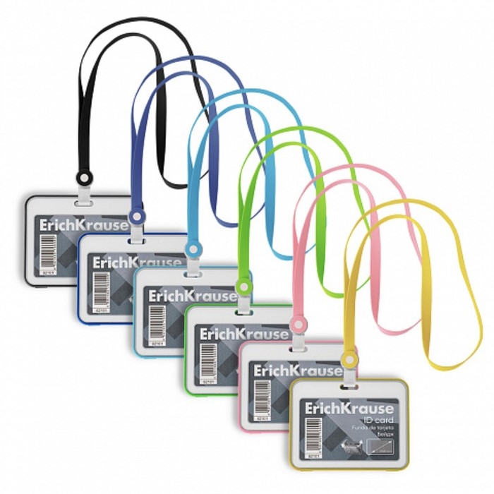 Бейдж горизонтальный 85 х 54 мм, ErichKrause книжка, силиконовая лента, микс