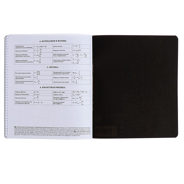 Тетрадь предметная формата А5+ (170х203 мм). Обложка из высококачественного мелованного картона плотностью 190 г/м2. Отделка - твин-лак. В блоке 48 листов в клетку с полями. Бумага офсетная плотностью 60 г/м2. Белизна бумаги - 100%. Цвет линовки - синий. Скругленные уголки обложки и блока. Тип скрепления - скоба. Имеет дополнительный лист с инфо-блоком с кратким изложением школьной программы. Тетради упакованы в термоусадочную плёнку по 5 штук.