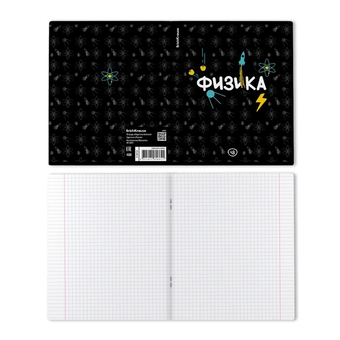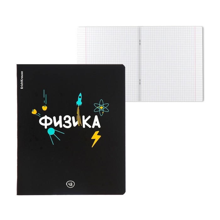 Тетрадь предметная ФИЗИКА, 48 листов в клетку, ErichKrause Inscription, обложка мелованный картон, твин-лак, блок офсет 100% белизна, инфо-блок