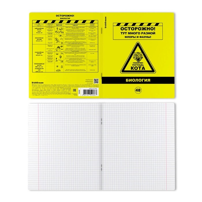 Тетрадь предметная БИОЛОГИЯ, 48 листов в клетку, ErichKrause Be Informed, пластиковая обложка, шелкография, блок офсет 100% белизна, инфо-блок